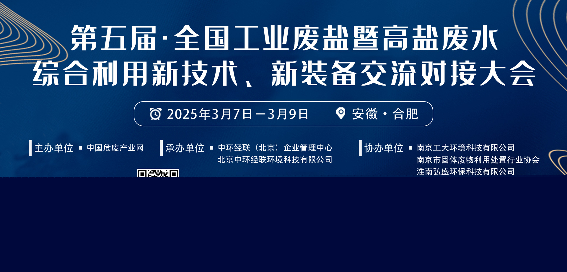 • 【3月·合肥】第五屆·全國工業廢鹽暨高鹽廢水綜合利用新技術、新裝備交流對接大會重磅開啟!